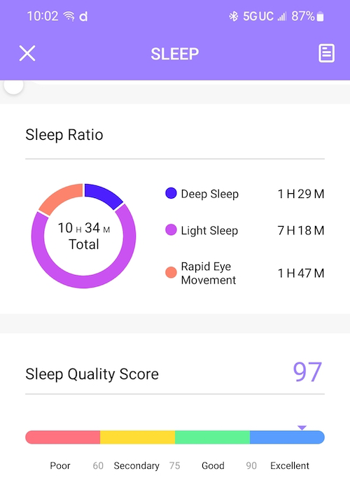 Her sleep quality score went down to a 94 from 97.